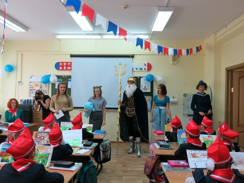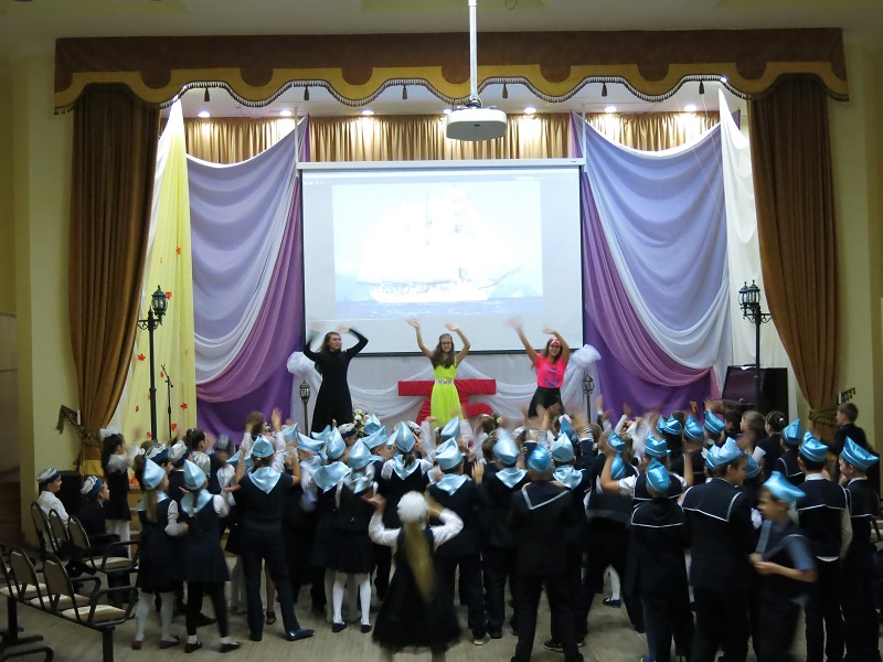 Адмиралтейство Нептун со своей свитой встречали учеников и учителей - песнями и тапнцами - задавали тон предстоящего праздника! Тесты, испытания, флешмобы - создавали незабываемую атмосферу праздника!