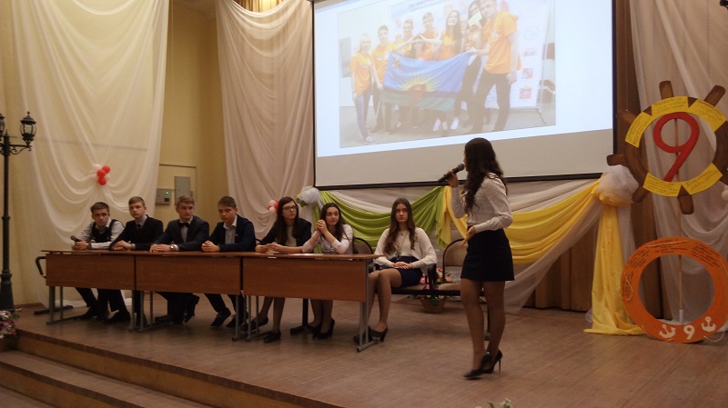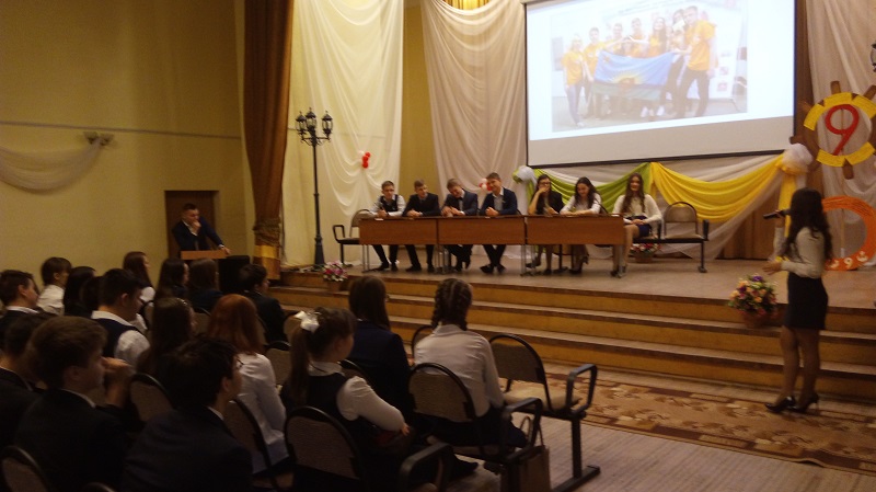 Пресс-конференция команды ученического самоуправления" Вектор" - участника городского Молодежного Фестиваля " Юность 21 века" 2016 года с учащимися 7-9 классов гимназии.